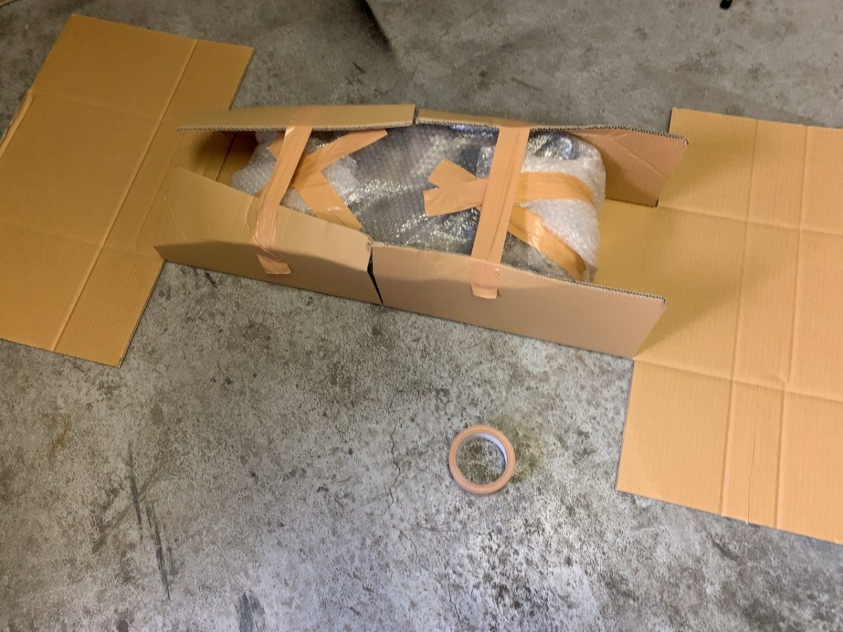 「プチプチロール」で包んだ後にダンボールで包んでいきます。