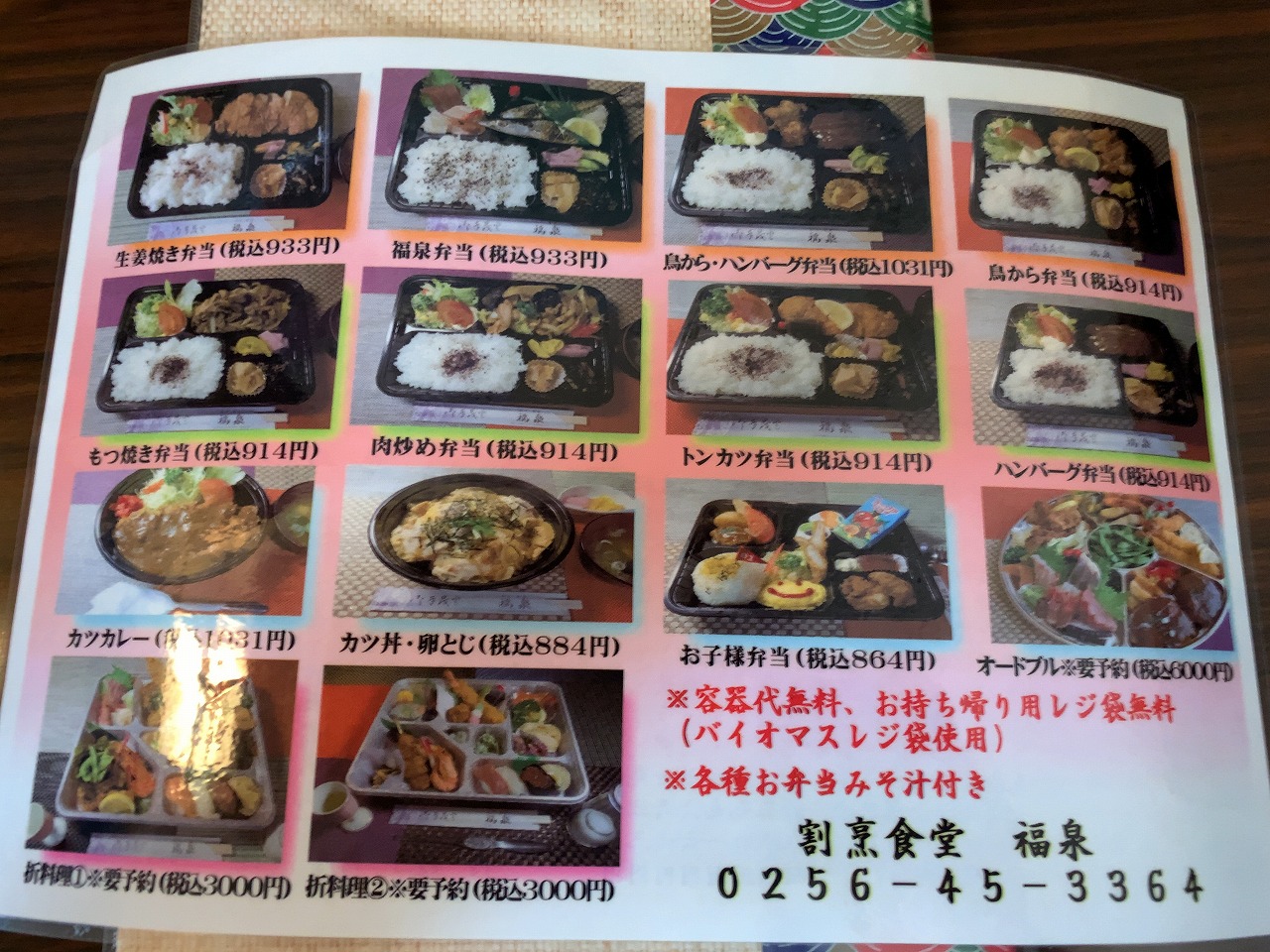 時節柄、テイクアウトメニューも充実してます。電話一本で作っておいてくれるので忙しい方にも便利ですね!容器代も込みでこのお値段は親切だと思いました。ってゆうか、寧ろお得じゃないですか?(笑)