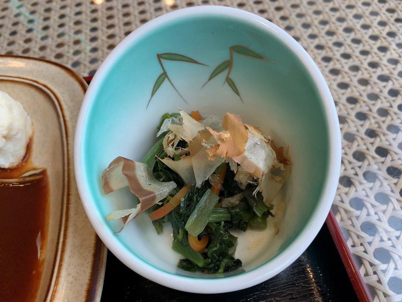 そして個人的に好きなのが、この辛子の効いたお浸し。これだけで酒のつまみになりそうな美味しさで、個人的に来るたびに楽しみなんです。😂