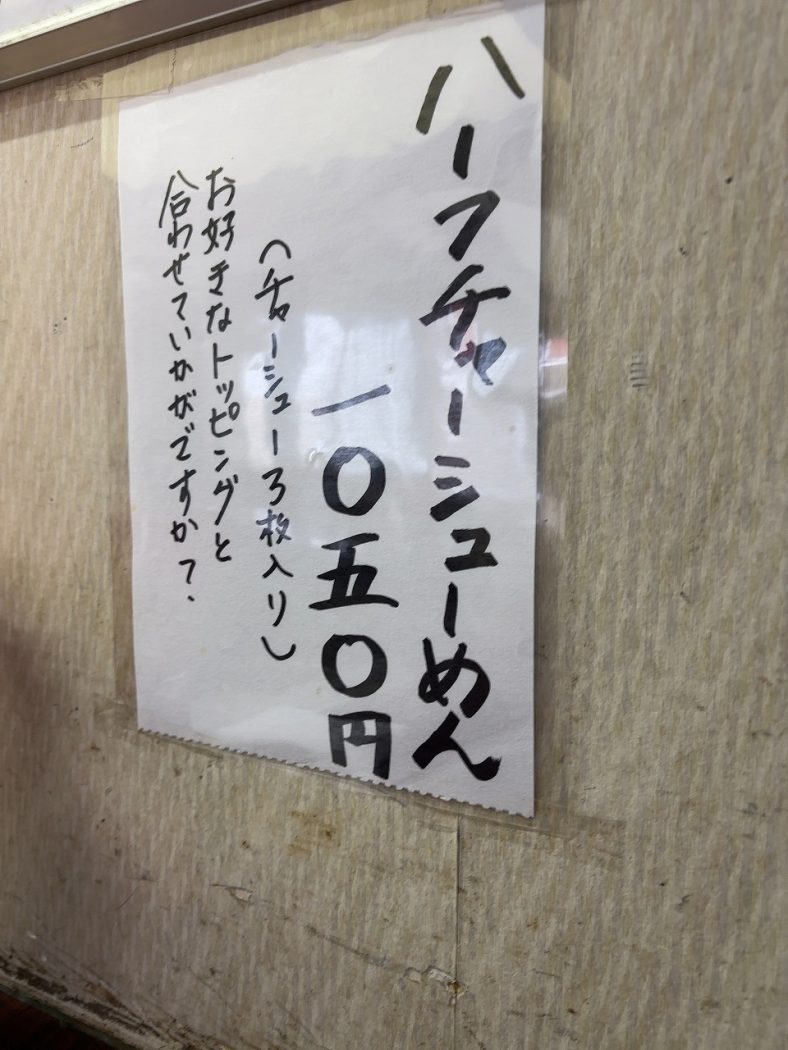 チャーシューメンが普通のラーメンより450円も高くなるので頼むには腰が引けますが、そんな方にはこちらも在ります。