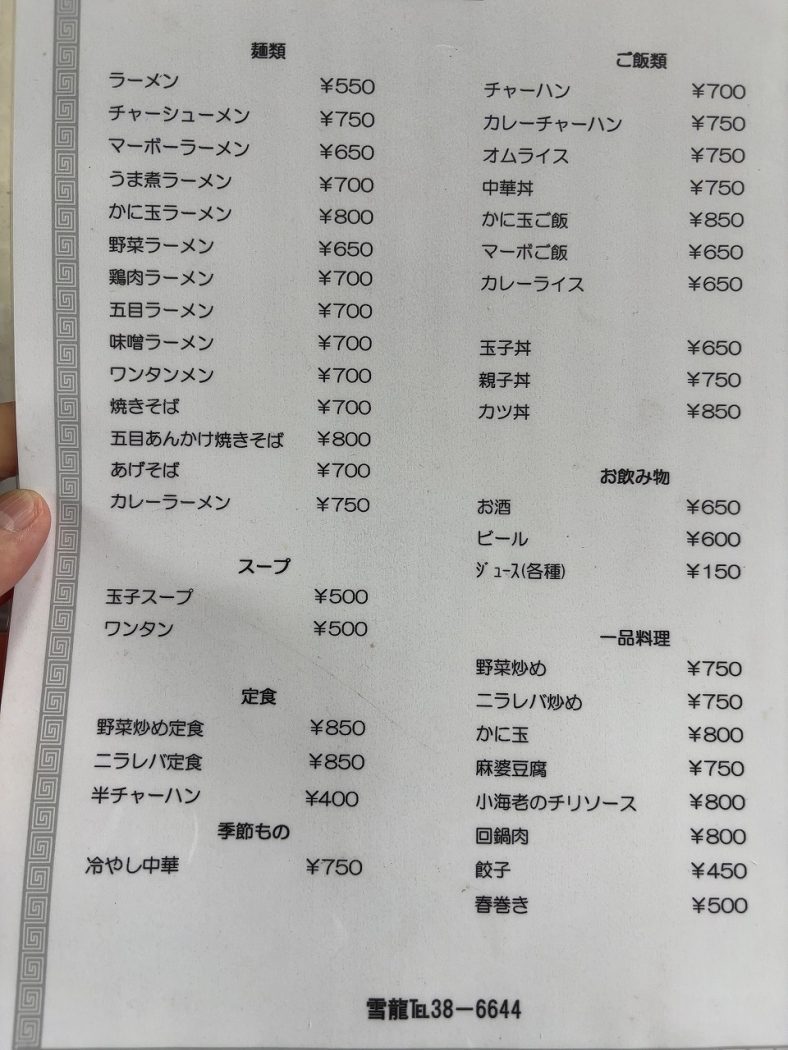 まずはメニュー拝見。相変わらず安くて頭が下がる思いです。何年か前に値上げしまして「やっと値上げしてくれたか」と思ったら、またまた世の中のあらゆる物が高騰して行き、超格安店に戻ってしまいました。