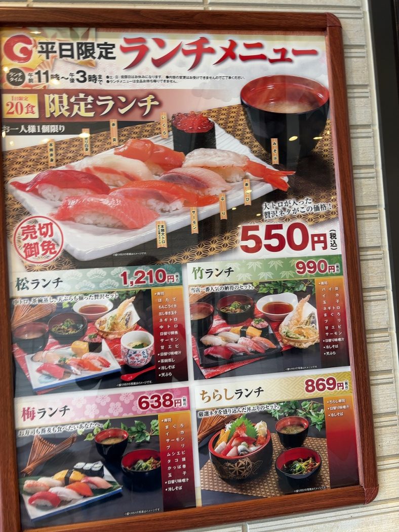 こちらの鼓響の平日限定ランチは、どうやらこの20食限定の大トロや高級ネタが入ってたったの550円のランチが目当てなのか、平日でも本店の吉田店も燕三条店も開店何十分も前から並んで行列が発生しているくらいの大人気店です。