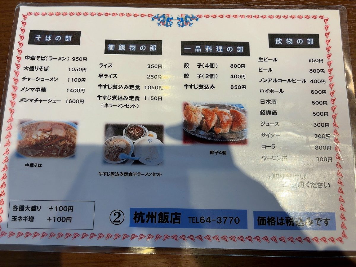 杭州飯店 メンマ中華 1400円。