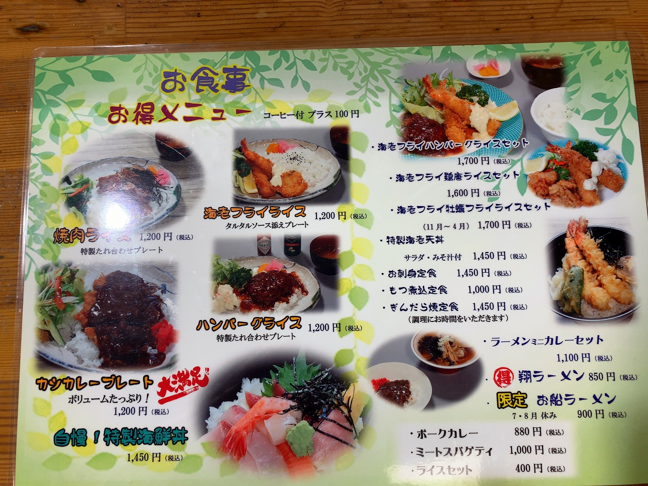 全体的にメニューはかなり絞られている感じですが、魅力的なメニューばかり!早速「お船ラーメン」を頼みますが、今の時期は出来ないんだそう。かなりガックリ来ましたがそれは致し方がないですねw