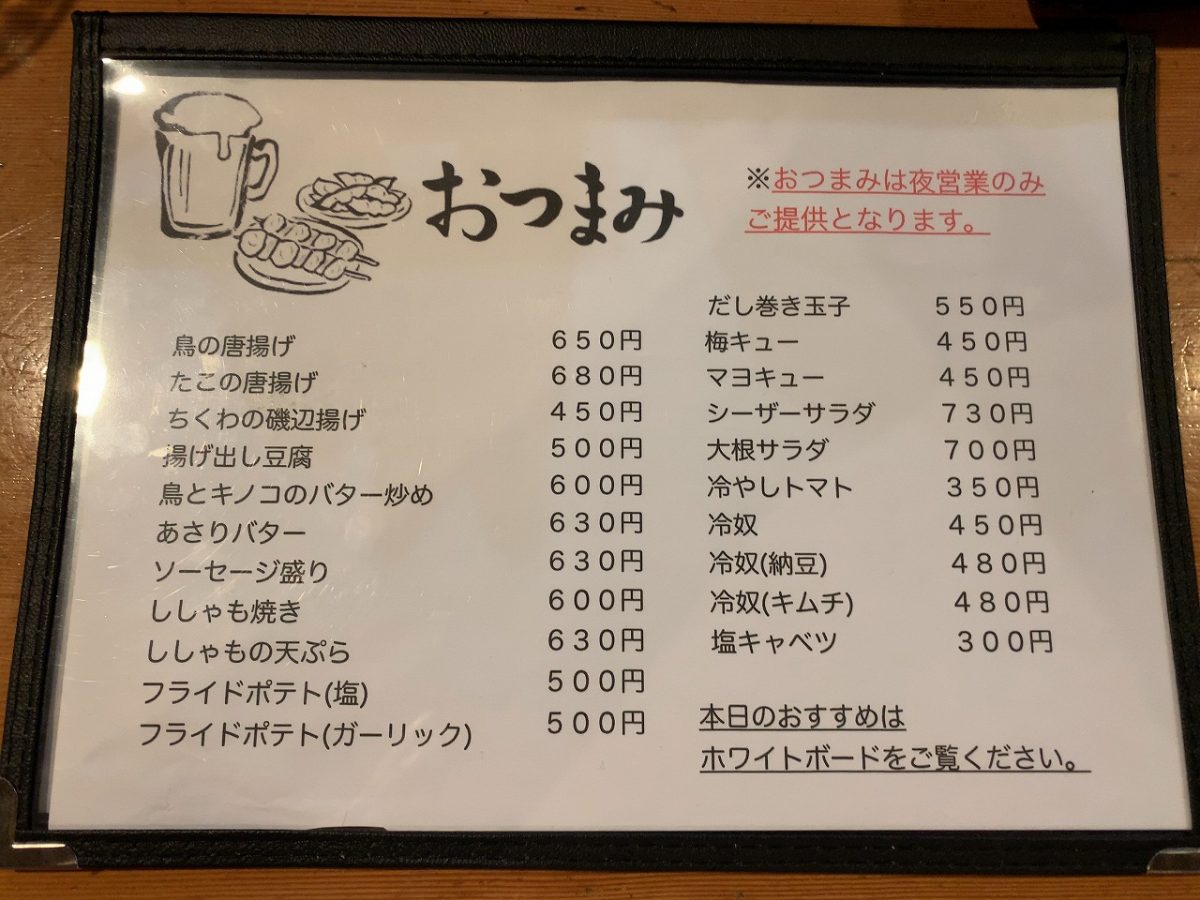 夜の居酒屋のほうが本業らしく、おつまみメニューが充実!お酒のメニューが凄く幅広かったです。