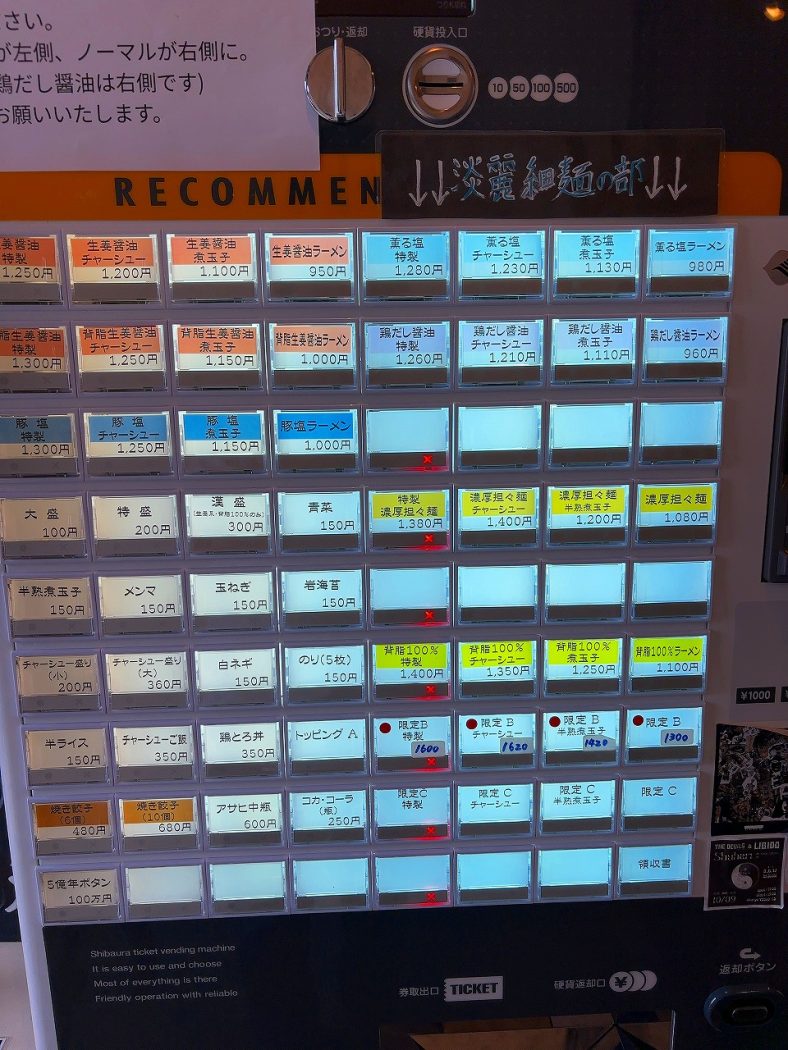 券売機のメニューです。淡麗系や濃厚担々麺とかは残ってますね。濃厚系も限定とかでいつかやってくれるんじゃないかな。「五億年ボタン」ってなに?笑