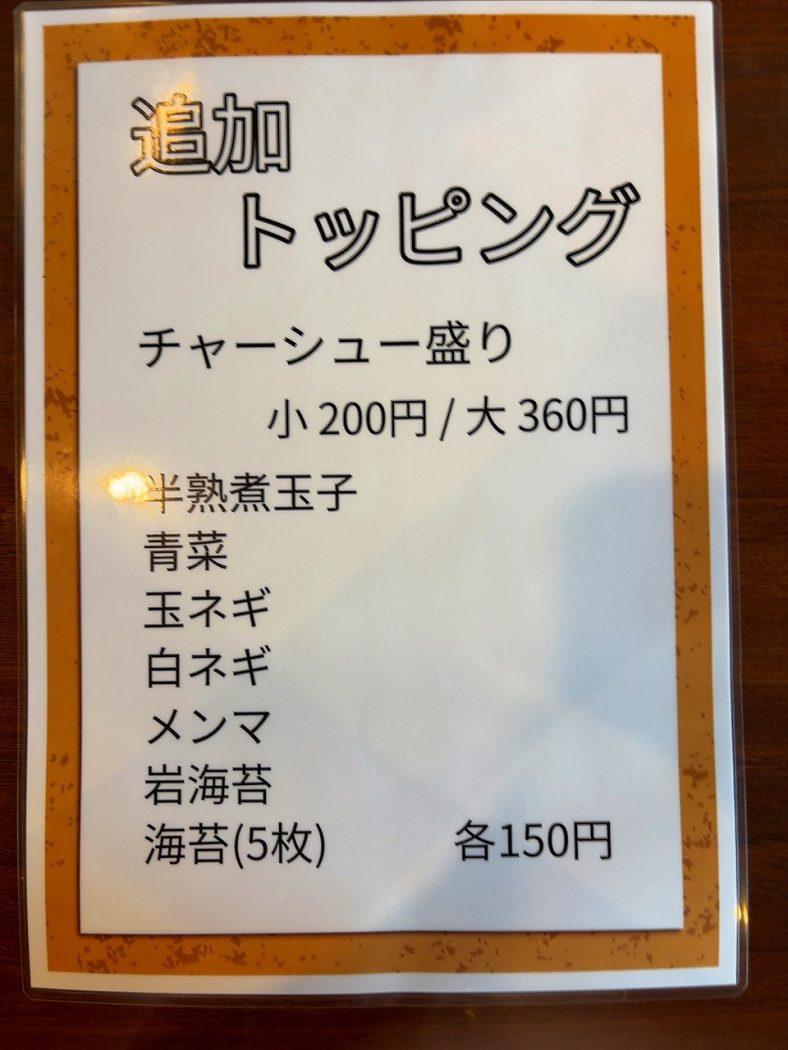 席に着いてからも「ああ、これも頼めば良かった」的にトッピングが追加できます。